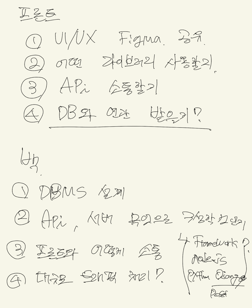 이것이 우리 최초 회의의 안건이었고, 이 날 나온 내용을 기반으로 최초의 UI/UX를 제작하였다.