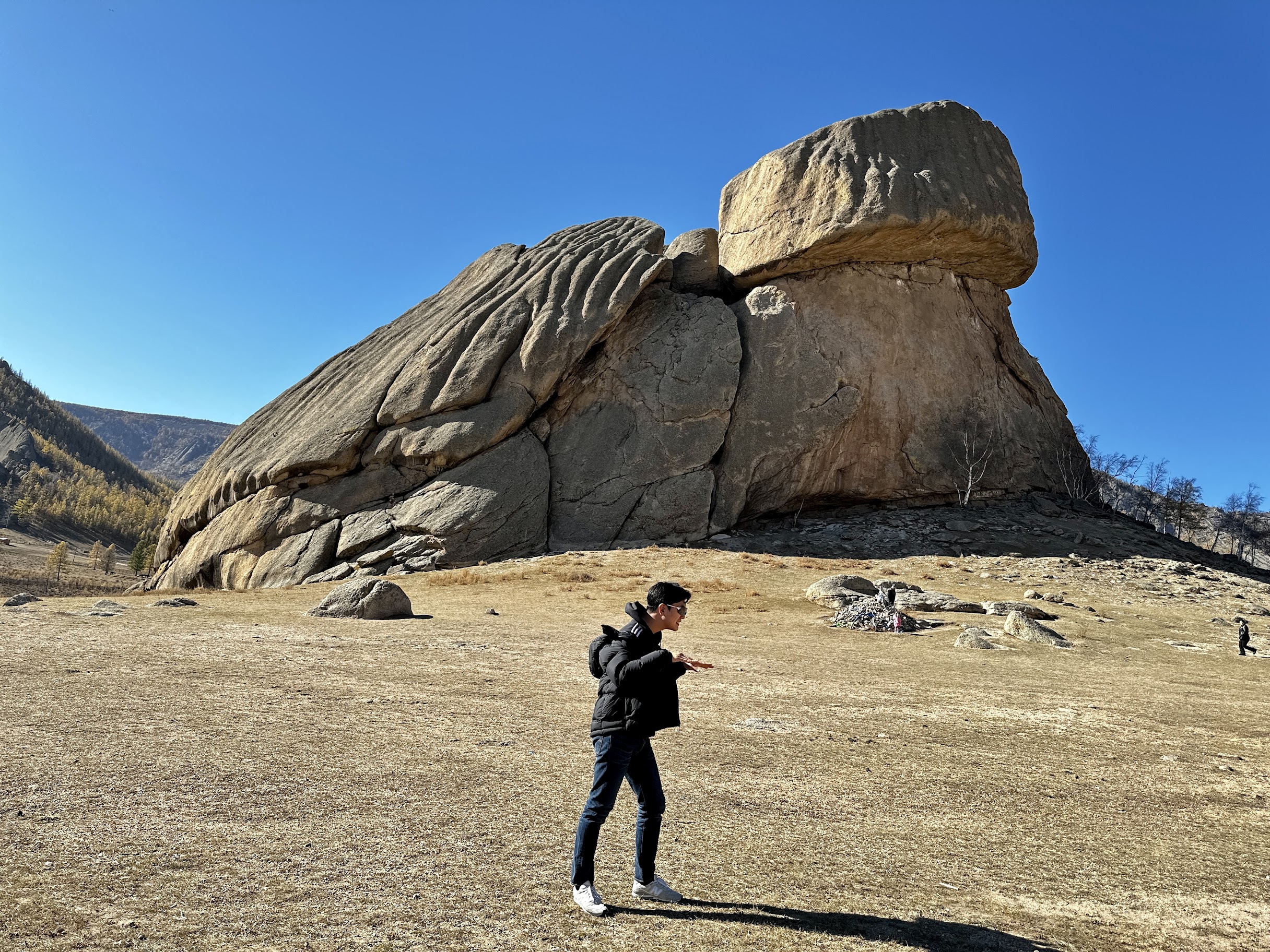우리의 다음 목적지는 거북이 바위, 사실 나는 무슨무슨 바위라고 하면 크게 기대하지 않는다. 우리나라에 있는 여러 이름있는 바위들을 봤을 때 크게 감명 받은적이 없어서, 이번 거북이 바위도 그냥 큰 원같은 돌을 보면서 거북이라고 이야기하지않을까? 라고 생각했다. 물론, 도착했을 때 내 생각은 산산조각났다. 그리고 '몽골 생각보다 만만치 않은 동네구나'라고 생각했다.