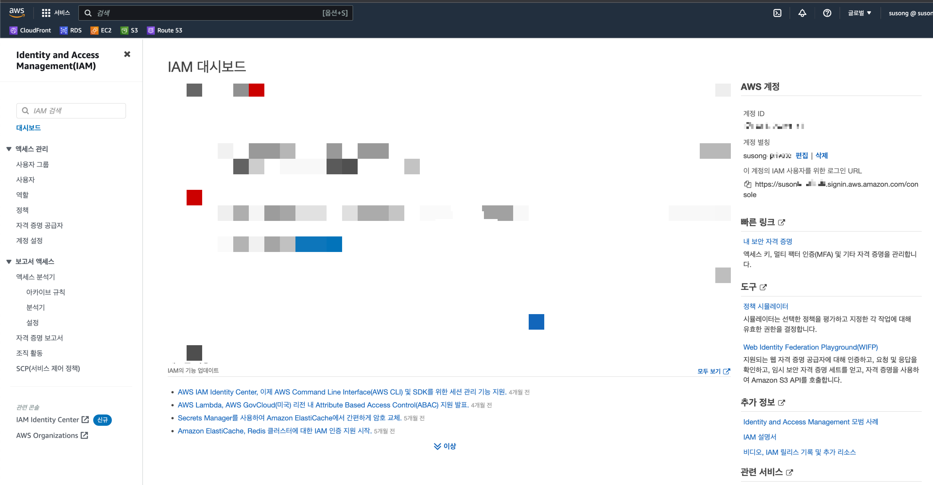 1. IAM 계정으로 로그인한다.(이 때 해당 계정은 반드시 IAM설정할 수 있는 권한이 있어야된다.